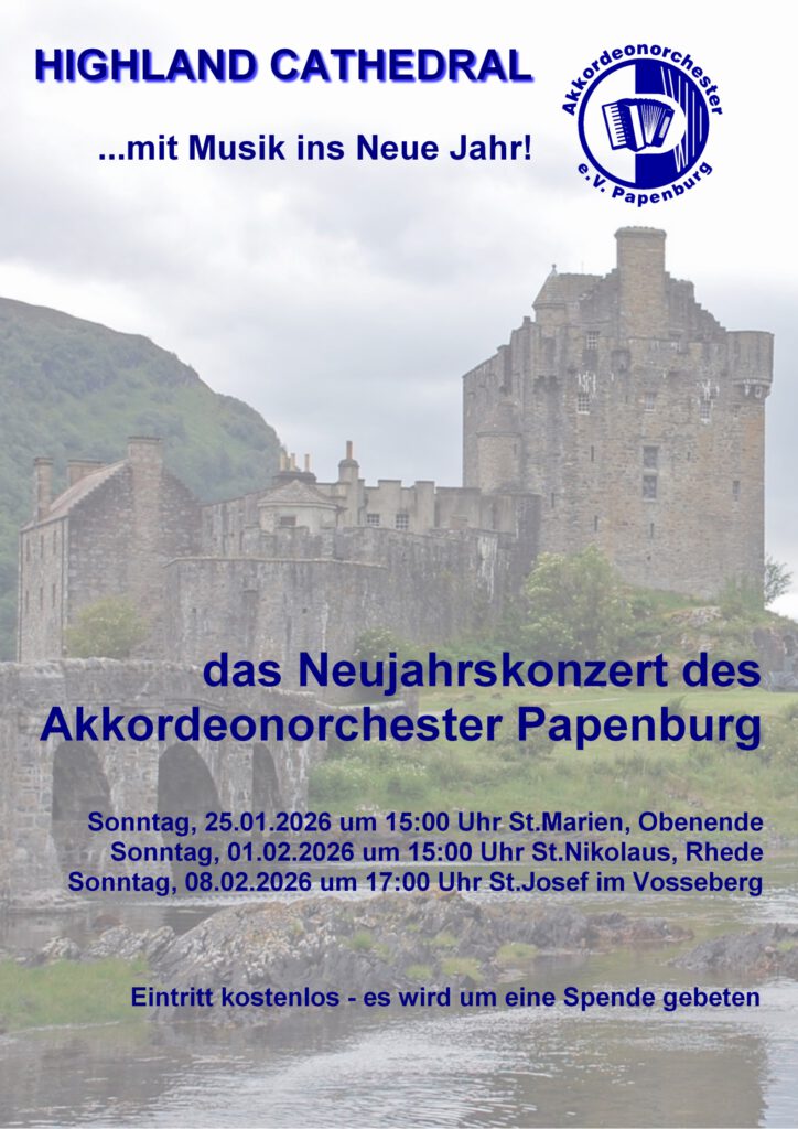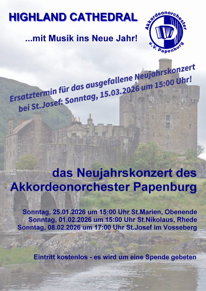 Unter dem Motto „Mit Musik ins Neue Jahr“ geben wir drei Kirchenkonzerte in Papenburg und Rhede.